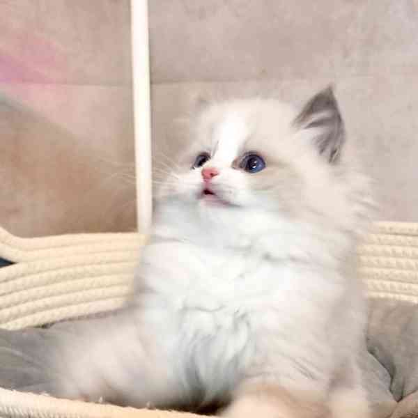 Nabízíme krásné kotě plemene Ragdoll s měkkou, nadýchanou srstí a úžasnýma modrýma očima. Toto plemeno je známé svou klidnou a něžnou povahou – a toto kotě není výjimkou.