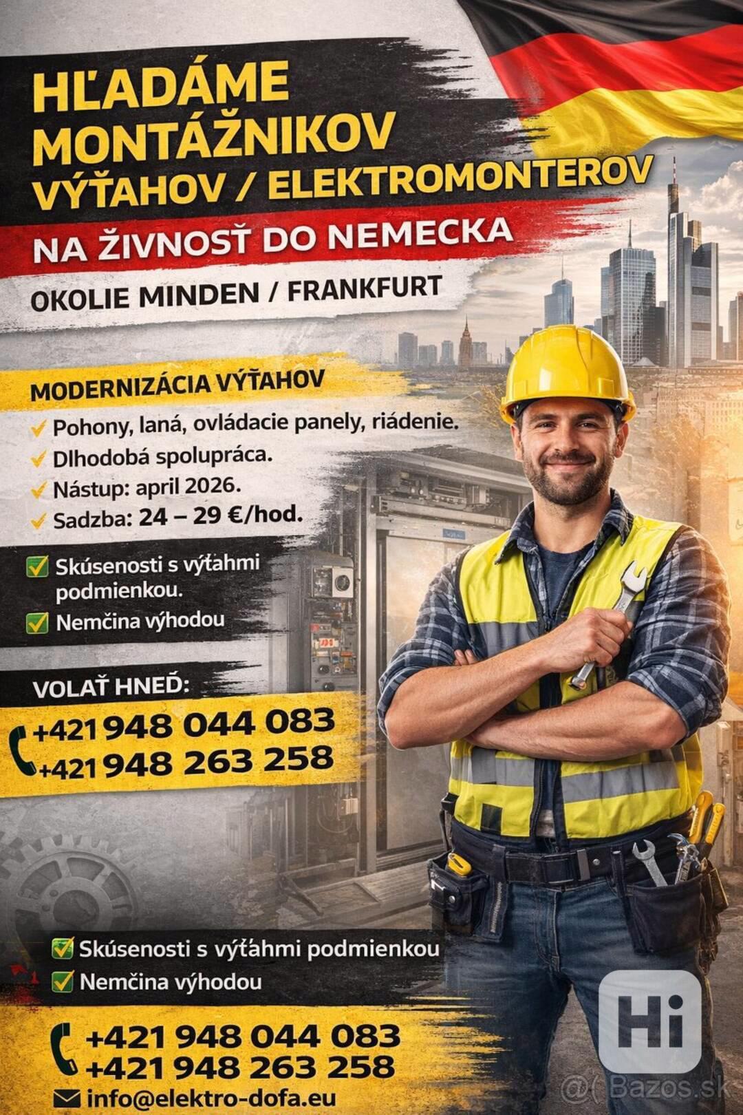 Hľadáme skúsených pracovníkov na projekt v Nemecku pre modernizáciu výťahov