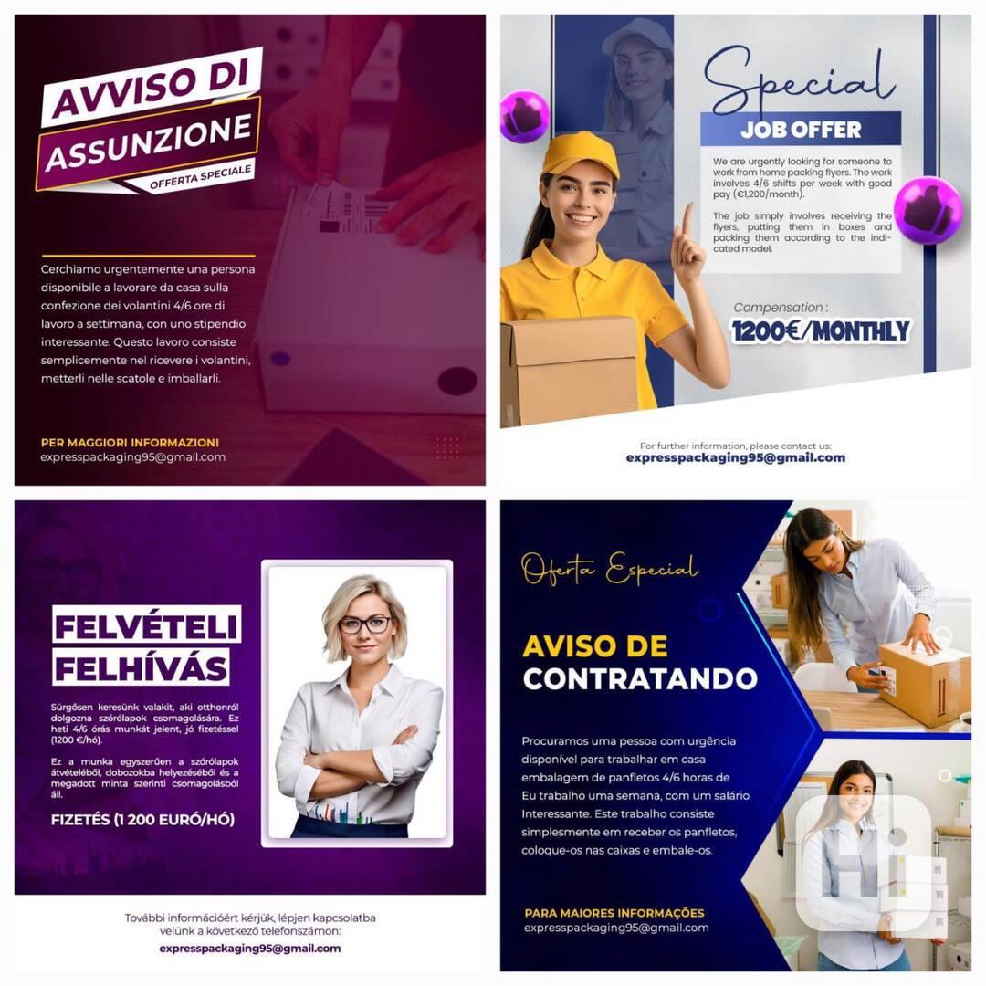 V rámci našich aktivit pravidelně přijímáme zaměstnance na domácí úkoly balení, třídění a balení letáků.
